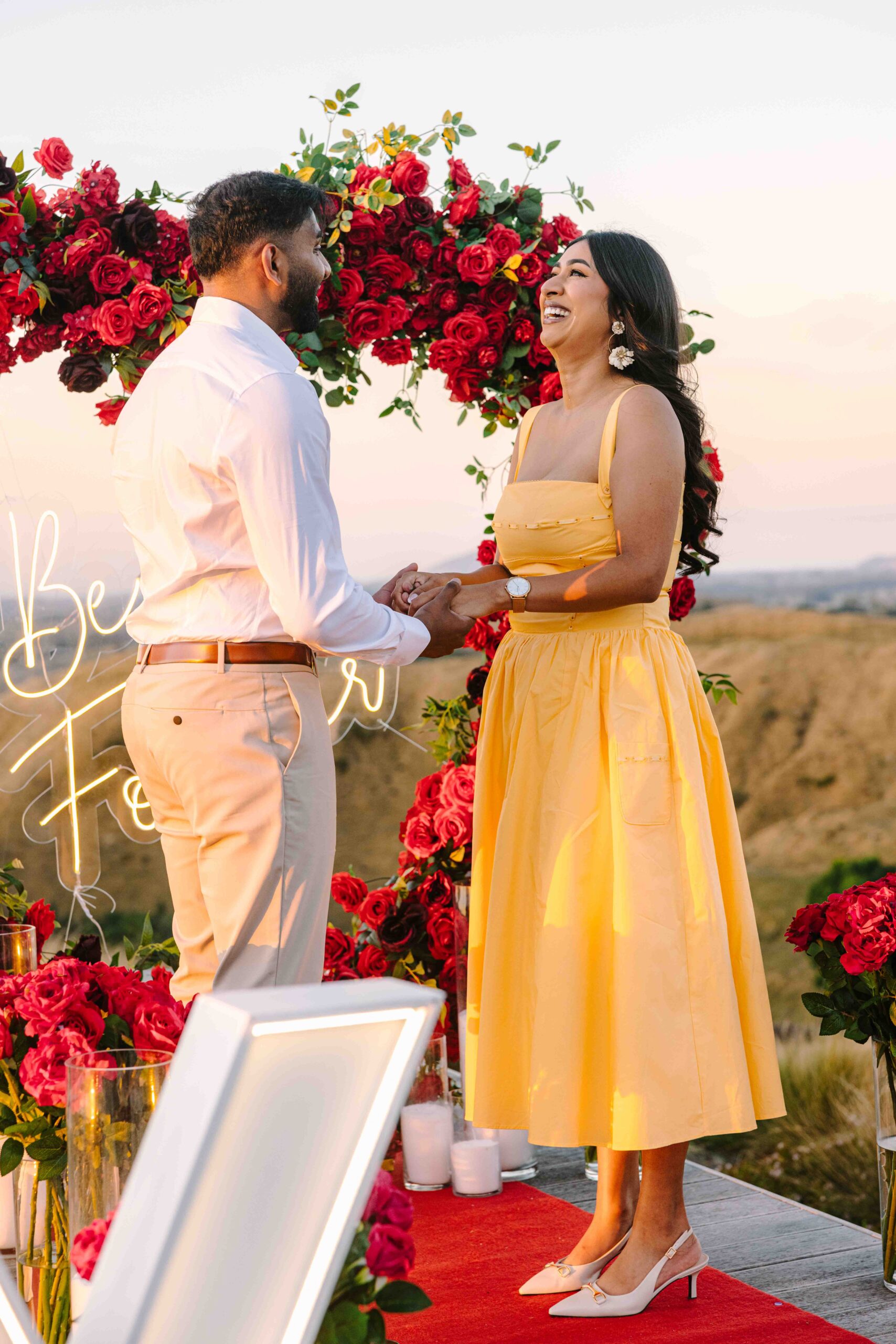 Lost in the golden hues of the sunset, Ash got down on one knee, and Upasna said YES! A breathtaking moment on top of the world, where love met the most surreal views.
