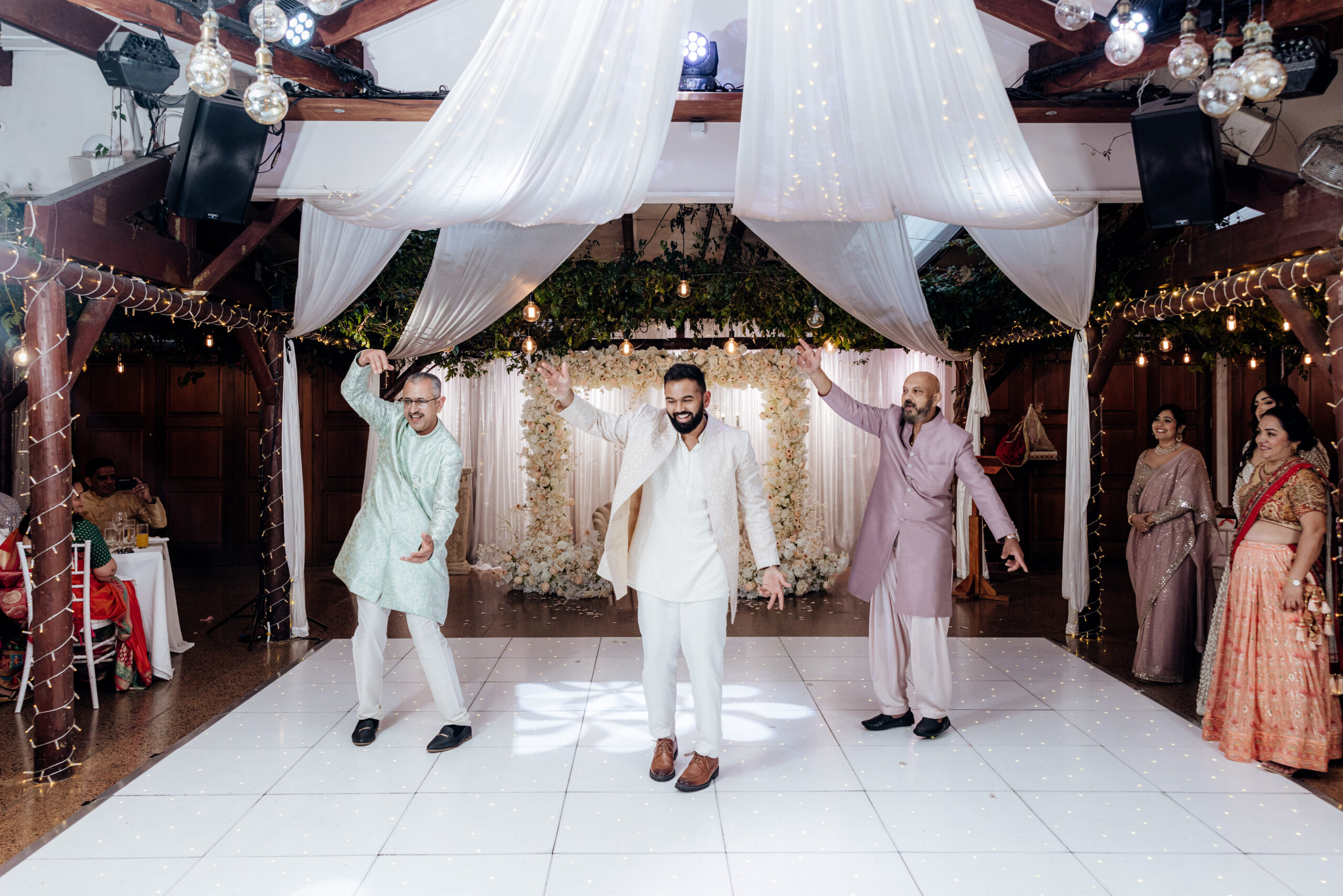The definition of a power couple! From their stunning outfits to the love they radiate, their engagement was a celebration of togetherness and tradition. Surrounded by family, their bond was blessed with beautiful Gujarati rituals. And let’s not forget the fiery dance performances that lit up the night!